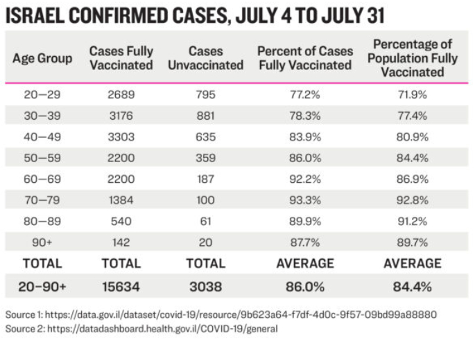 Israel Israel is one of the most heavily vaccinated countries in the world. From the table opposite it can be seen that the majority of people in hospital are vaccinated persons. This suggests the vaccines are not effective against variants.