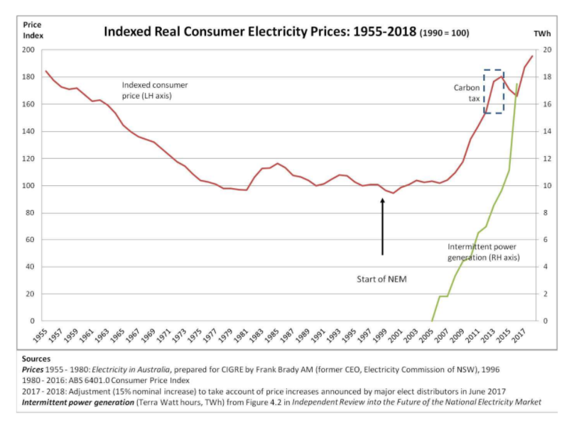 The major motivation for going to the considerable effort of creating this web-page is revealed in this graph concerning the cost of electrical energy to consumers in Australia.