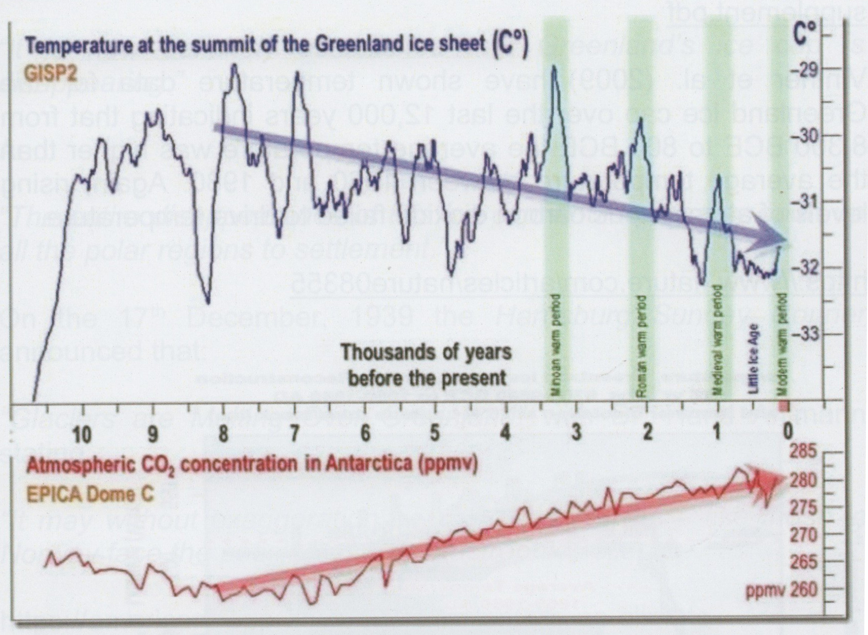 - Monnin et al 2001 - looked at Dome Concordia (also in Antarctica) - and found a delay on the recent rise out of the last major ice age to be 800 + 600 years