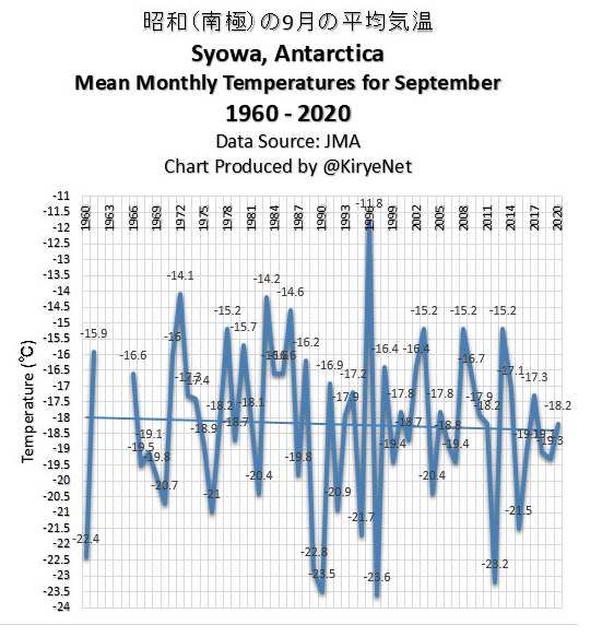 Note also that climate on earth is affected by the celestial cycles listed above. Within the sun there are also movements of plasma that change the strength of the sun's magnetic field. When the strength of the magnetic field drops, cosmic rays can more easily enter the solar system and therefore there is a higher flux of cosmic rays striking earth's atmosphere which, in turn, results in increased clouds in earth's atmosphere. These clouds reflect the sun's radiation making the earth's climate cooler. Temperature data after around 1990 have to be treated with some suspicion in that there has been a deliberate attempt by some to exaggerate temperatures so as to feed the "Anthropogenic Global Warming" narrative. For example, Figure 11, provides data from the Japanese Meteorological Agency for their base in Antarctica from 1960 to 2020 which shows a distinct cooling trend even though the graph shown in Fig 29 would suggest there has been warming. (It all depends on who is providing the data and, because the temperatures go up and down during climatic cycles, from which point measurement begins and ends.) This will be dealt with in greater detail later. "Winter is Coming!"