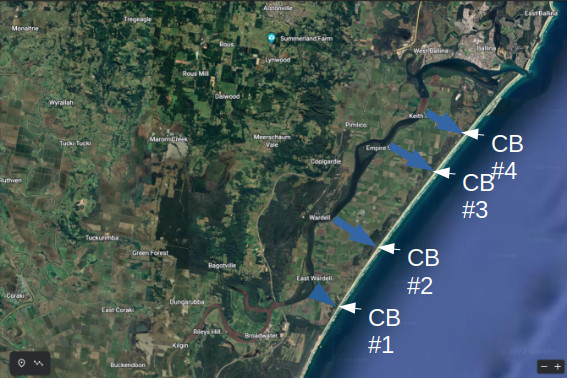 - Construction of “Circuit Breaker”/Diversionary Canals. There should be constructed a series of diversion canals leading from the Richmond River directly to the Ocean. Given the flat, sandy nature of the terrain, this would be an ideal task for a bulldozer/excavator and large floating dredge.