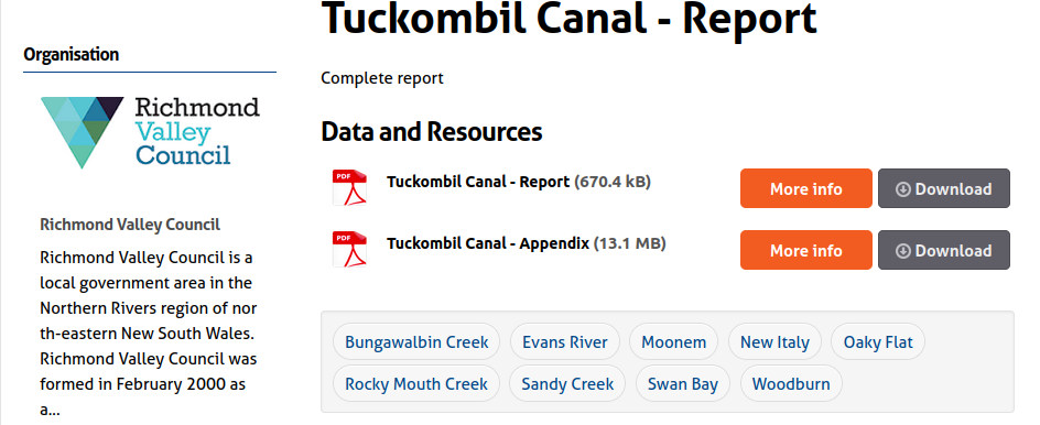 Fig 6. Tuckombil Canal Report Request Download — Click on Picture to Enlarge.
