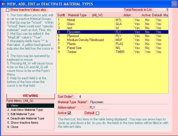 - In Add Mode. When a user has selected “1. Add” from the menu options, the forms fields are unlocked and enabled as appropriate for the particular operation. Its mode, “In Add Mode”, is displayed just above the form's options menu. If there is a sorting order for data, the sort order number is incremented, or, in the case of the first item being added, set to 1 and locked so the user cannot change it.