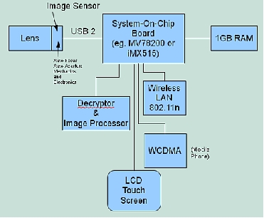 Block Diagram. Figure 7 provides a representation of a block diagram of the reader. The optics, processor, memory and communications means can be provided by any common barcode reader or mobile phone. The "heart" of the reader is the image processing chip. Reader Components. The reader consists of the following: