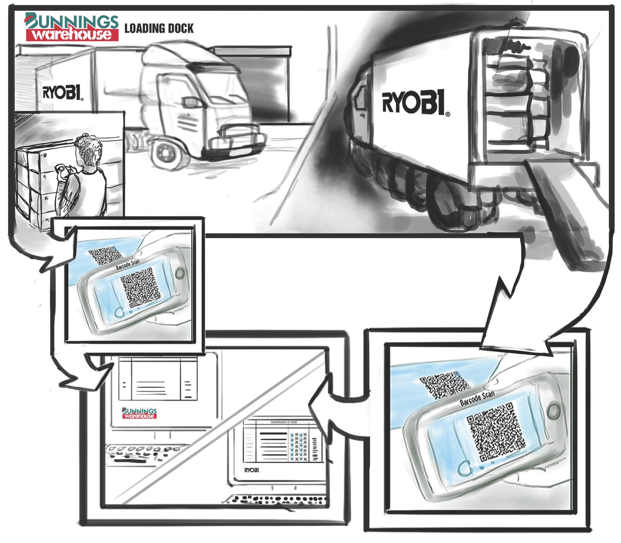 Scanning at the loading dock, changes the status of the items on the local dispatching stores system from "GOODS ON TRUCK" and on the transportation system to "GOODS RECEIVED".