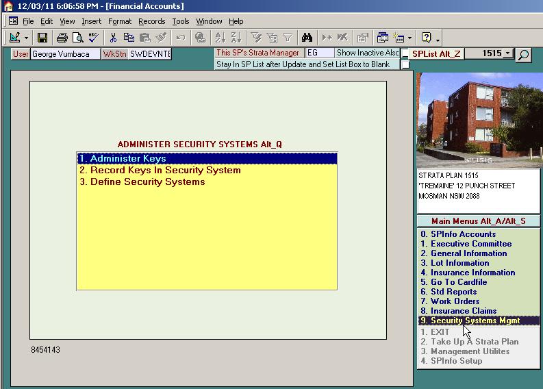 Objective. The Building Security Module keeps track of the issue of all keys to clients in Strata Plans and also stores information relating to the nature and settings of any security systems within a building for the purposes of operation and maintenance.